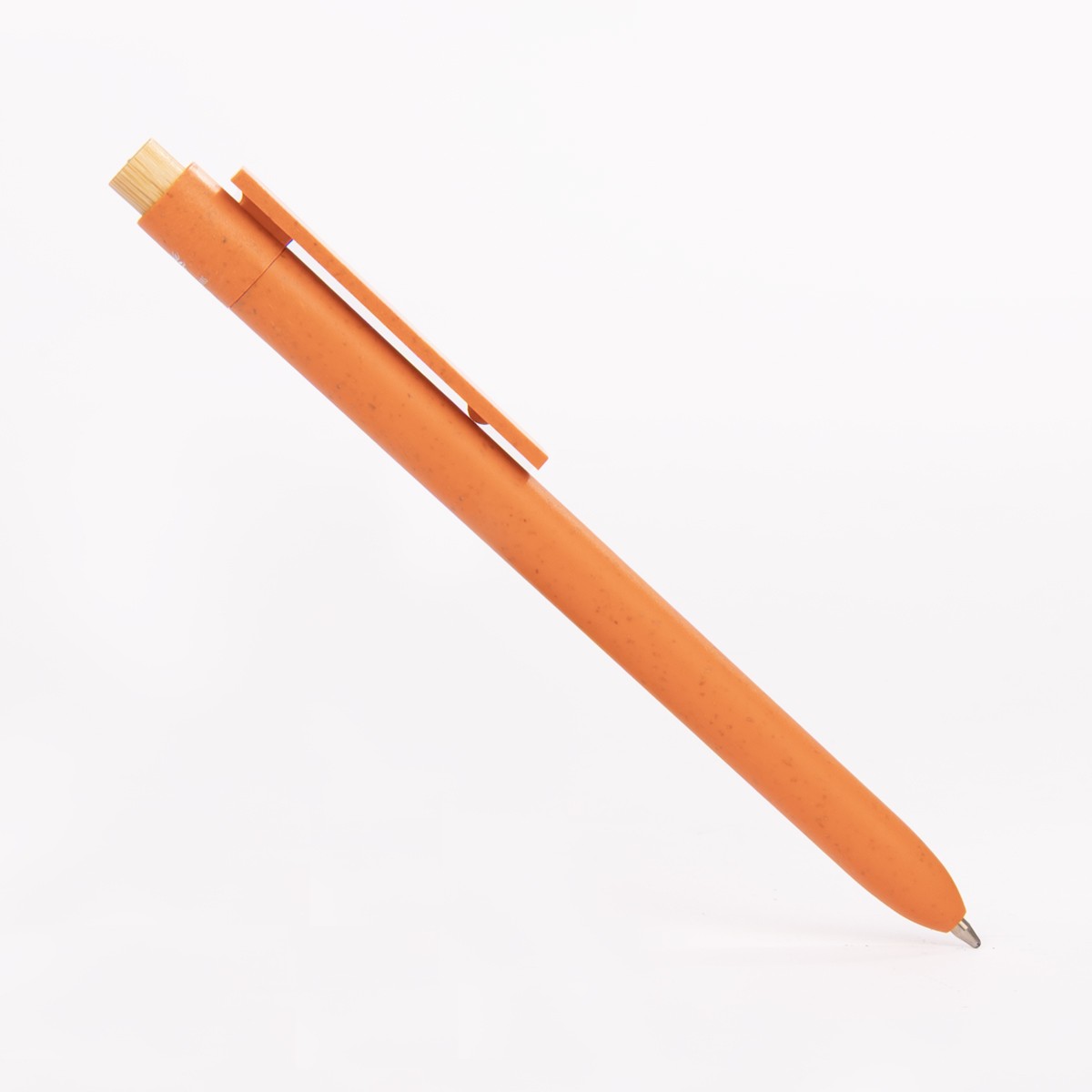 BOMBAY es un bolígrafo que combina lo esencial con lo responsable. Su cuerpo y clip están elaborados con fibra de trigo, un material natural que reduce el uso de plástico convencional, mientras que su pulsador de bambú añade un toque orgánico y moderno. Disponible en una paleta de colores vibrantes –blanco, azul, rojo, verde, naranja y café– y diseñado para personalización, BOMBAY es ideal para campañas que buscan comunicar creatividad y sostenibilidad en un solo trazo