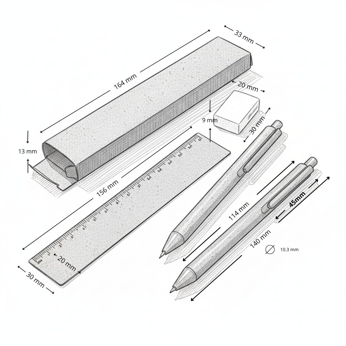 MINAS GERAIS transforma el escritorio en un espacio con propósito. Este set de papelería, elaborado a partir de fibra de café reciclada, incluye bolígrafo, lápiz, regla con impresión métrica, goma de borrar y estuche del mismo material con el mensaje “The Green Life”. Cada elemento refleja una mirada hacia la sostenibilidad sin perder funcionalidad. El diseño compacto y el mensaje grabado en su caja lo convierten en un obsequio ideal para espacios educativos o entornos de trabajo responsables. Personalízalo y haz que tu marca inspire creatividad y conciencia ambiental desde el primer trazo